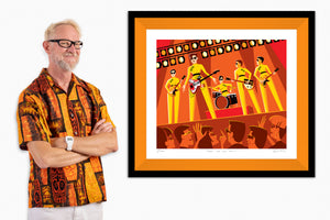 • Loading image: "Live from the Pit" Framed Fine Art Print with Shag (Josh Agle) | Orange Liner | The Shag Store "Live from the Pit" Framed Fine Art Print with Shag (Josh Agle) | Orange Liner | The Shag Store