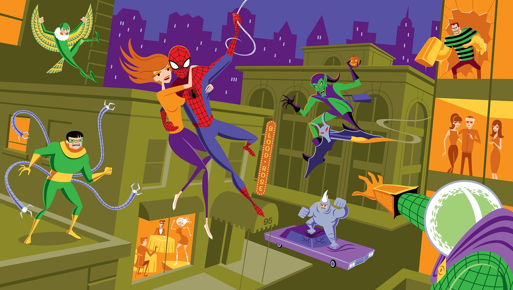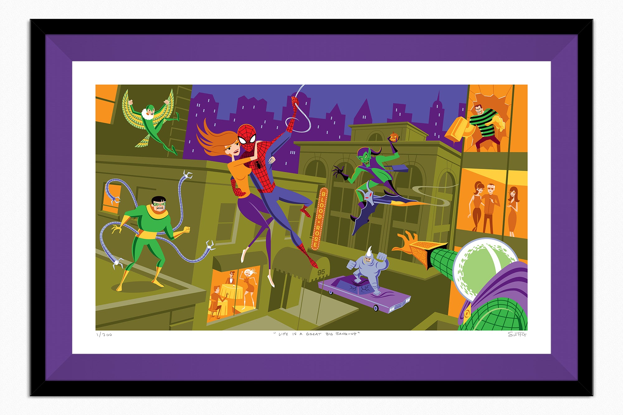 Wherever there's a hangup, "Life's a Great Big Bang Up"... You'll find a Spider-man swinging into action! This fine art print was commissioned and approved by Stan Lee himself months before his passing. Enjoy Shag's tribute to your friendly neighborhood Web-slinger and the classic Marvel universe!