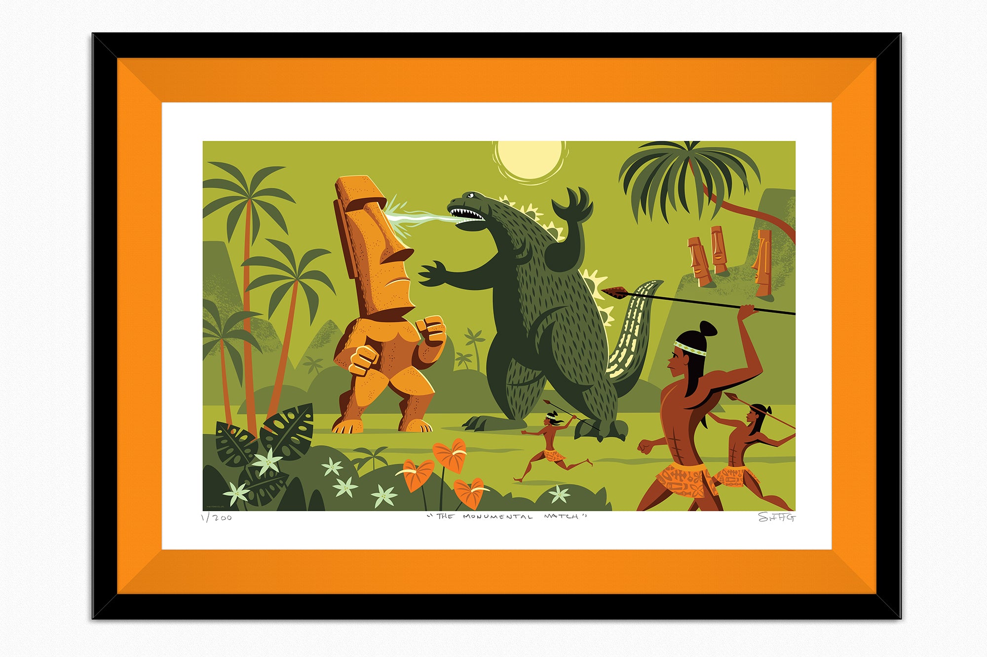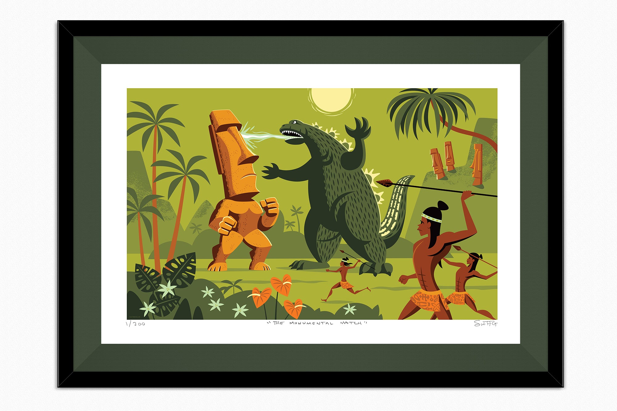 After releasing his Kingu Monsuta fine art print, TOHO Studios, legendary creators of Godzilla and many other kaiju films, gave Shag exclusive permission to create his very own monster in our official 2021 San Diego Comic-Con fine art print release, The Monumental Match.