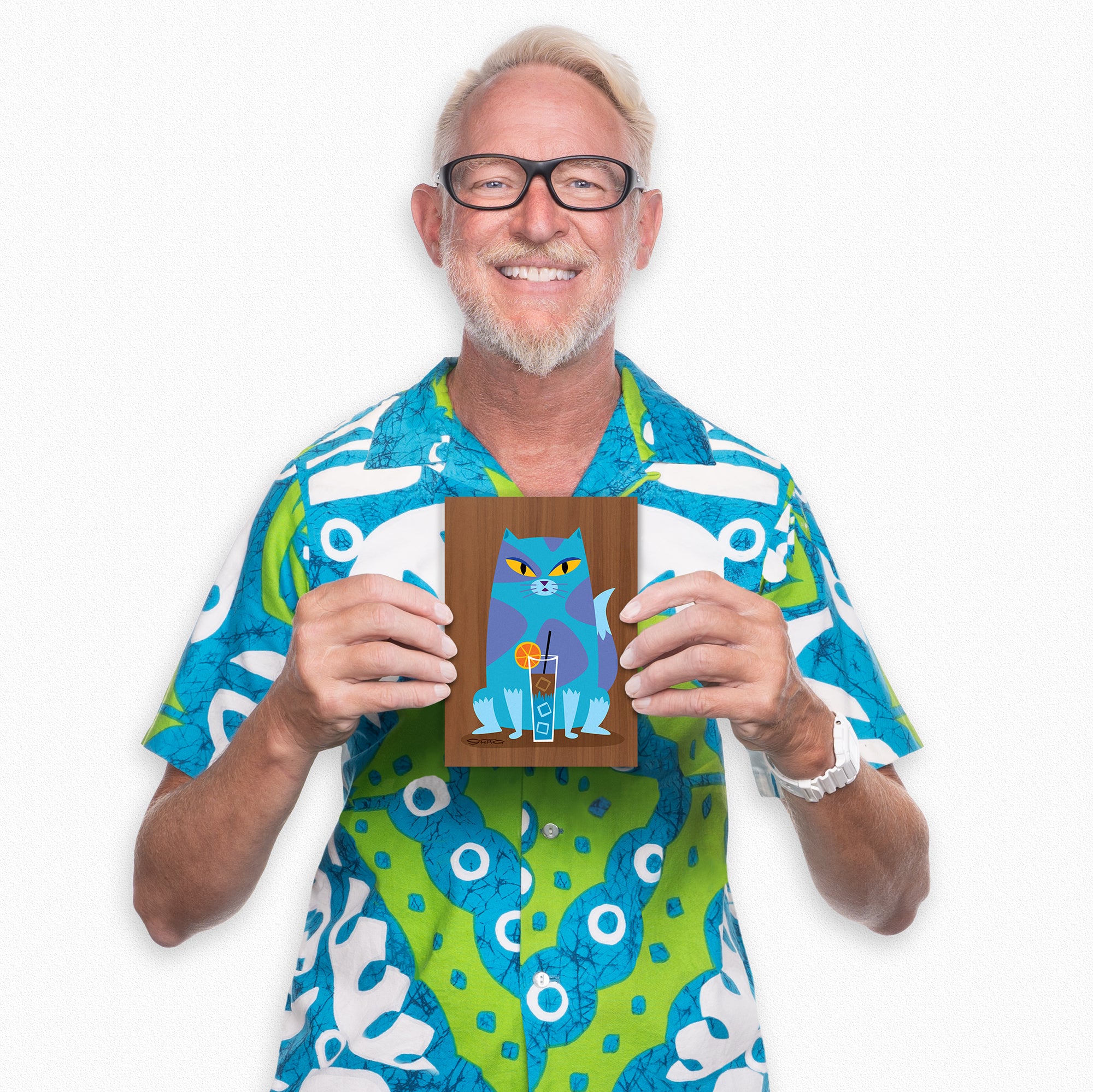 Released at DesignerCon 2025, Shag’s Seabottom is the blue cat in his “Intoxicats” Fine Art Prints on Wood Series. Ready to hang on your wall framed or unframed, enjoy with a “Cheers!” to our feline friends.